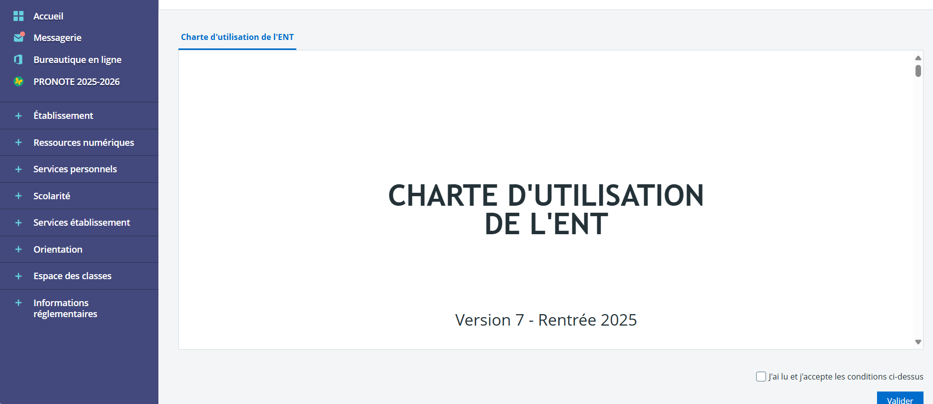 INFO TECHNIQUE : ACCES MENU ENT et CHARTE